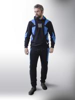 Мужской костюм черного цвета с логотипами.
